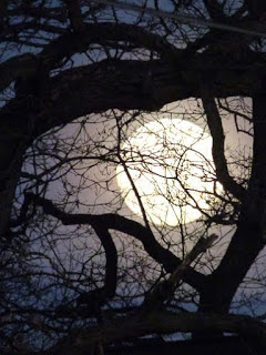 I turned around and looked at my previous spot on the sidewalk, and yes, some light was shining there, but it was a shadowy light because the light first had to get thru some bare branches of a tree to reach it.