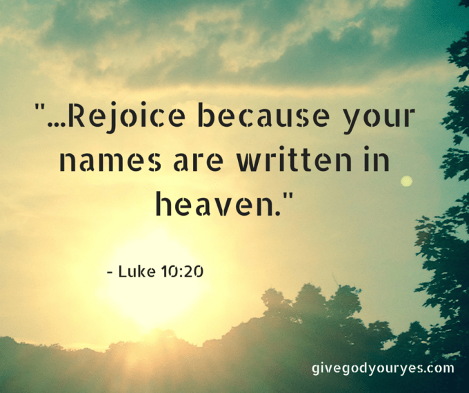 Luke 10:20 by givegodyouryes 07/03/201607/03/2016 Share this: Click to share on X (Opens in new window) X Click to share on Facebook (Opens in new window) Facebook Like Loading... Related