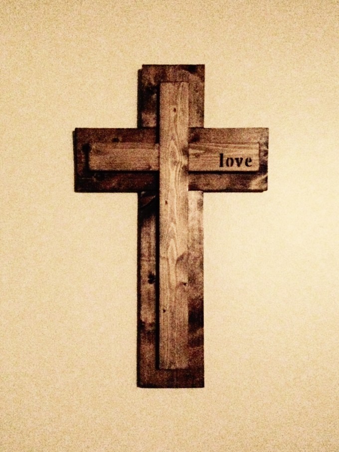 I laid on my couch staring at my wooden cross hanging on the wall. But since I wasn’t wearing my glasses the woodburned word was not clear. I knew it said “love”. But all I saw was a smudge.