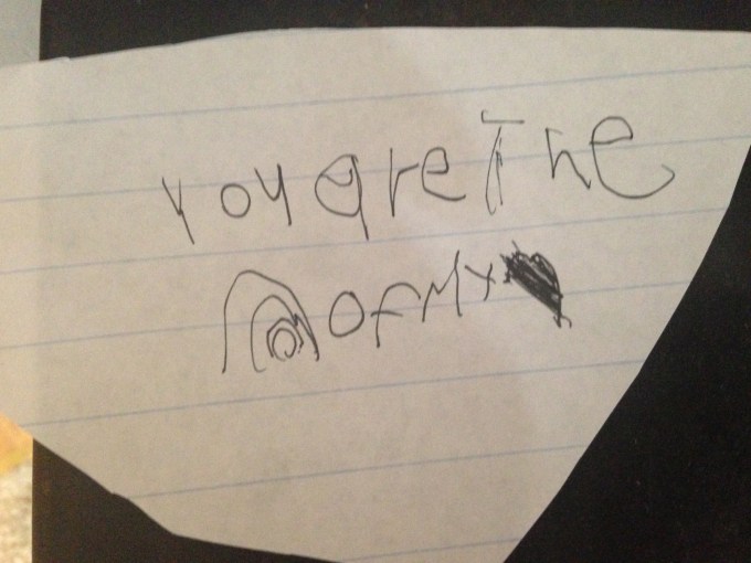 For my sanity and OCD I tried to guide her “Write on the next page; not some random page. Don’t scribble; you have to actually write words.” [Have I mentioned I’m not good at letting go of control!] She did well — Making a “to do” list [she is a girl after her mother’s heart!] Then she shouted “Don’t look at me!” as she sat in bed beside me and wrote a note.