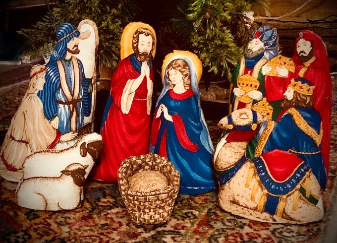 The second part of the challenge was a challenge for a different reason then usual — I own a Wendell August metal Nativity and so the baby Jesus is in the manger (and waiting patiently in the box until Christmas). Luckily I also own a fabric Nativity but hadn’t set it up yet, but luckily the manger is a dual-sided hay/Jesus combination so that I can do this challenge.