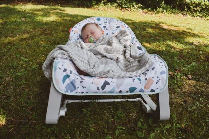 An infant lying in a trough